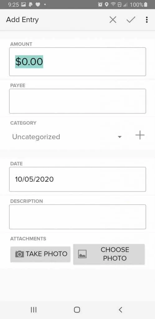 You also have the ability to take a picture of receipts, allowing you to store documentation of your expenses.