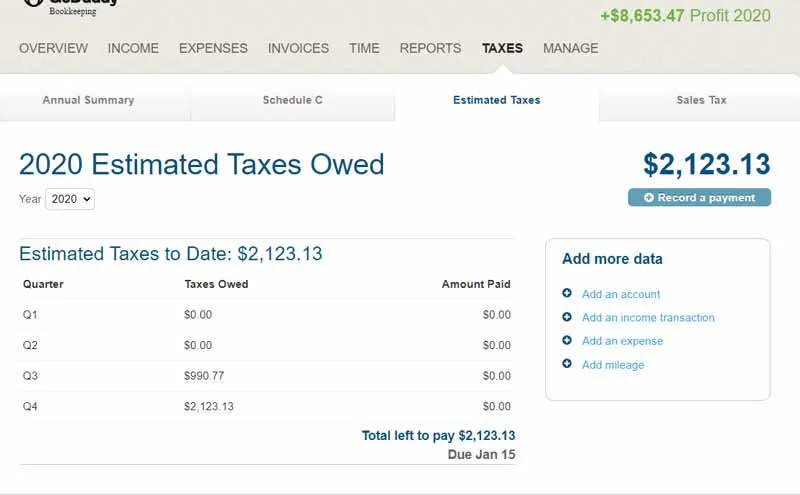One of your main reasons for keeping records in the first place is the taxes. I do think there are a couple of things in GoDaddy Bookkeeping’s tax section that can be useful.